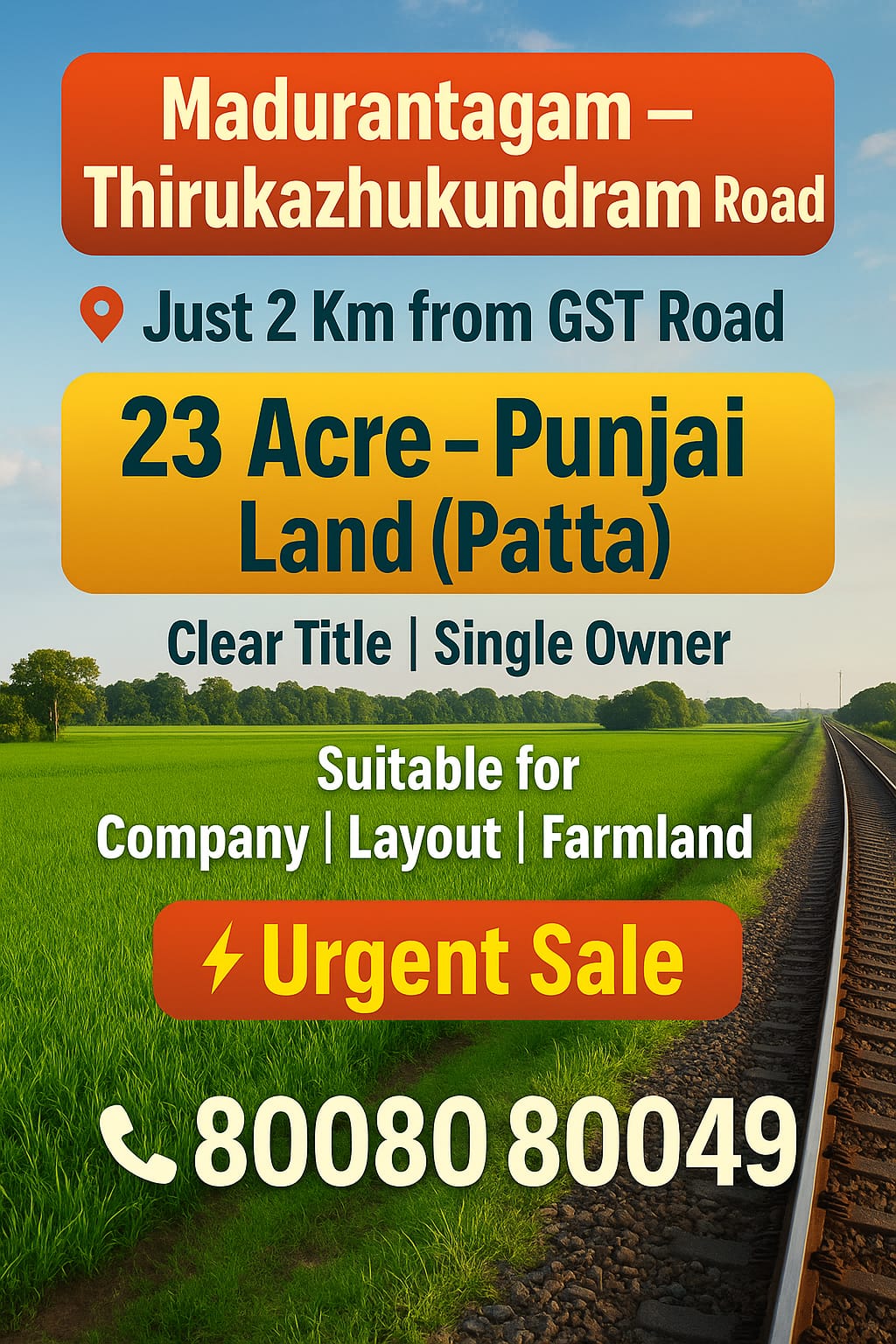 Trusted farmland & commercial property deals in Madurantakam, GST Road (NH-32) and nearby locations. Clear title, patta available & guided support till registration
