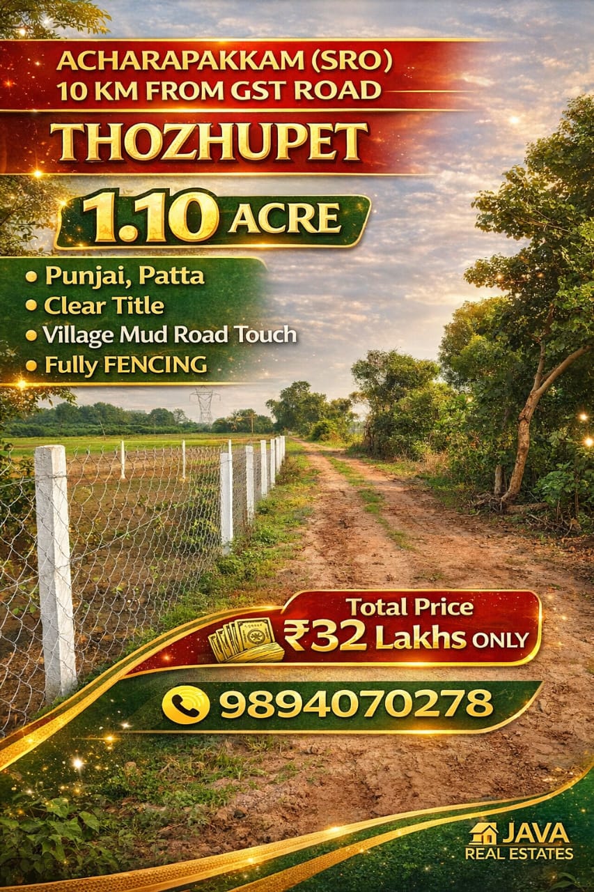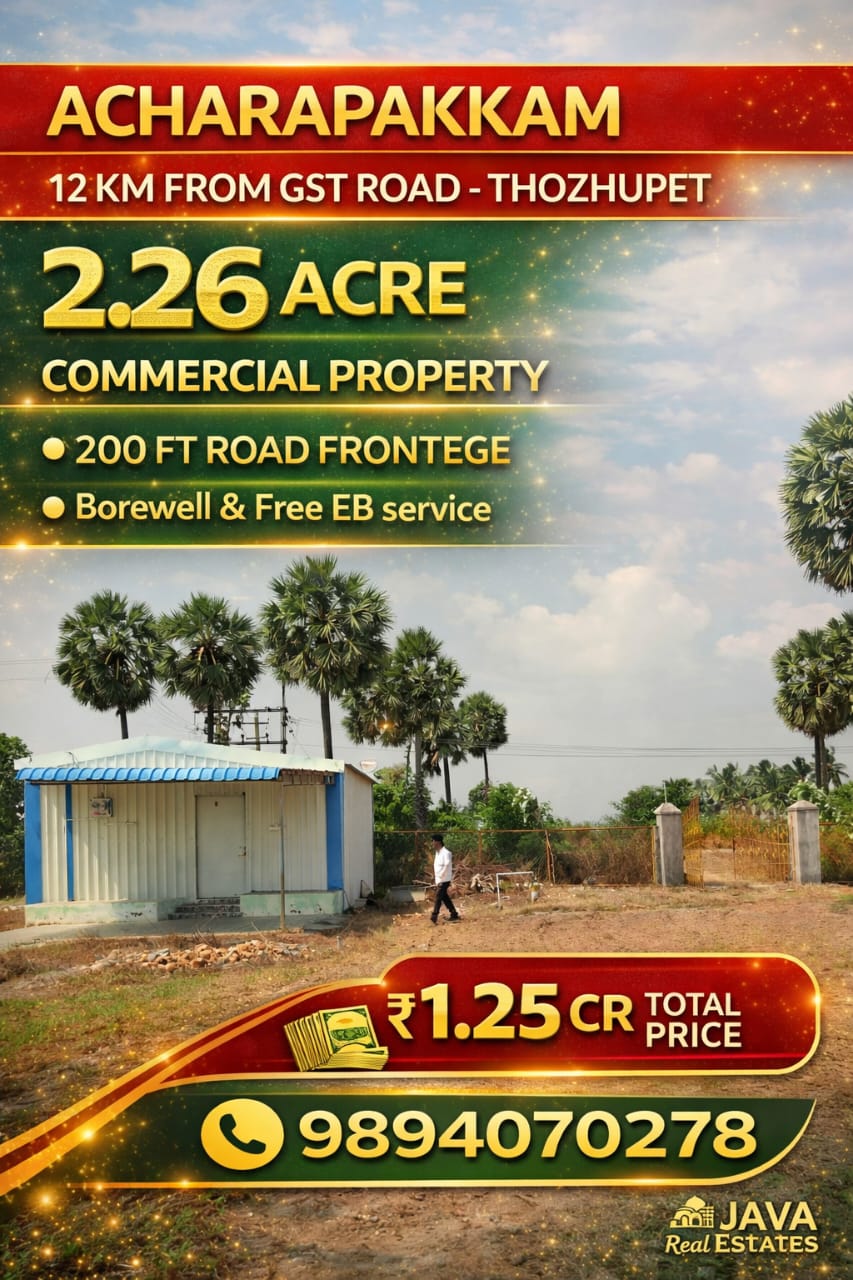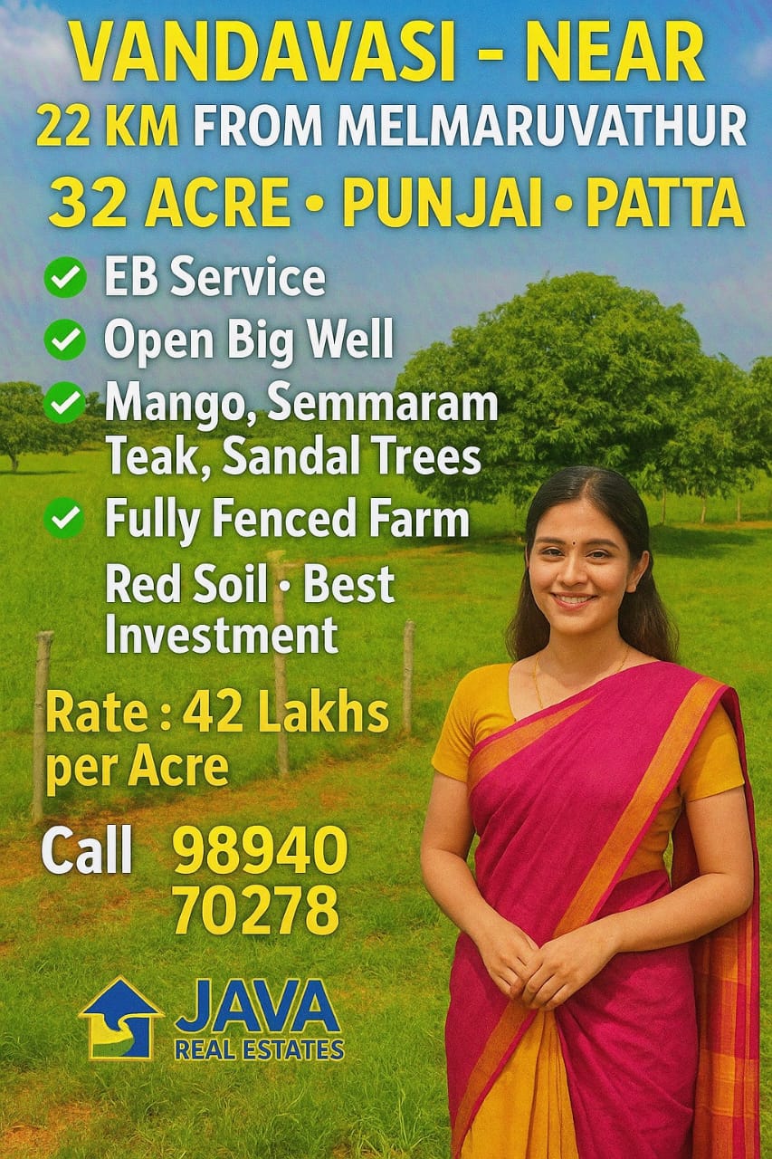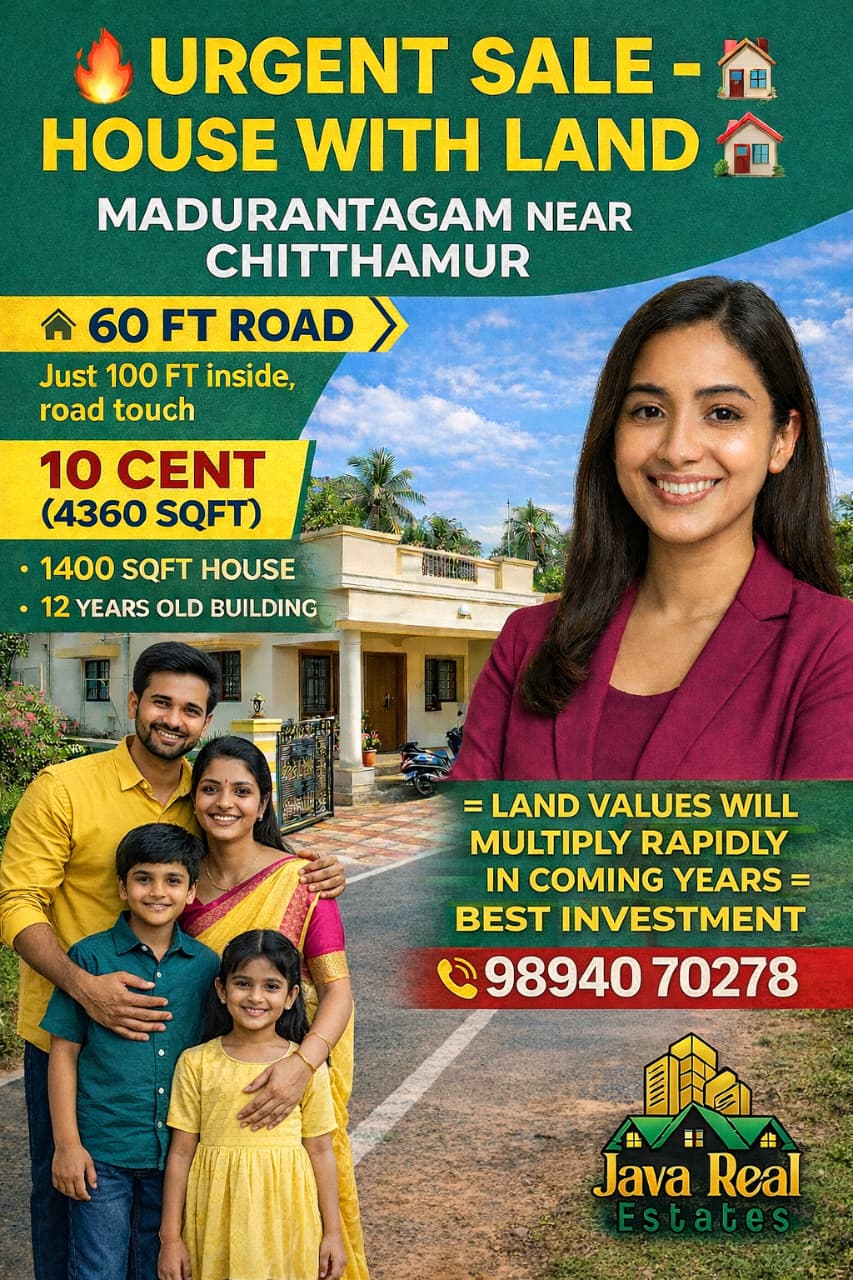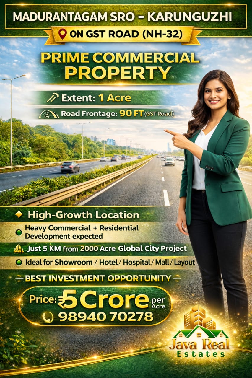 Java Real Estates is a trusted real estate consultancy based in the Madurantakam region, specializing in farm lands, agricultural lands, and prime commercial properties. We help buyers and investors find the right property with transparency, clear guidance, and the best market options.