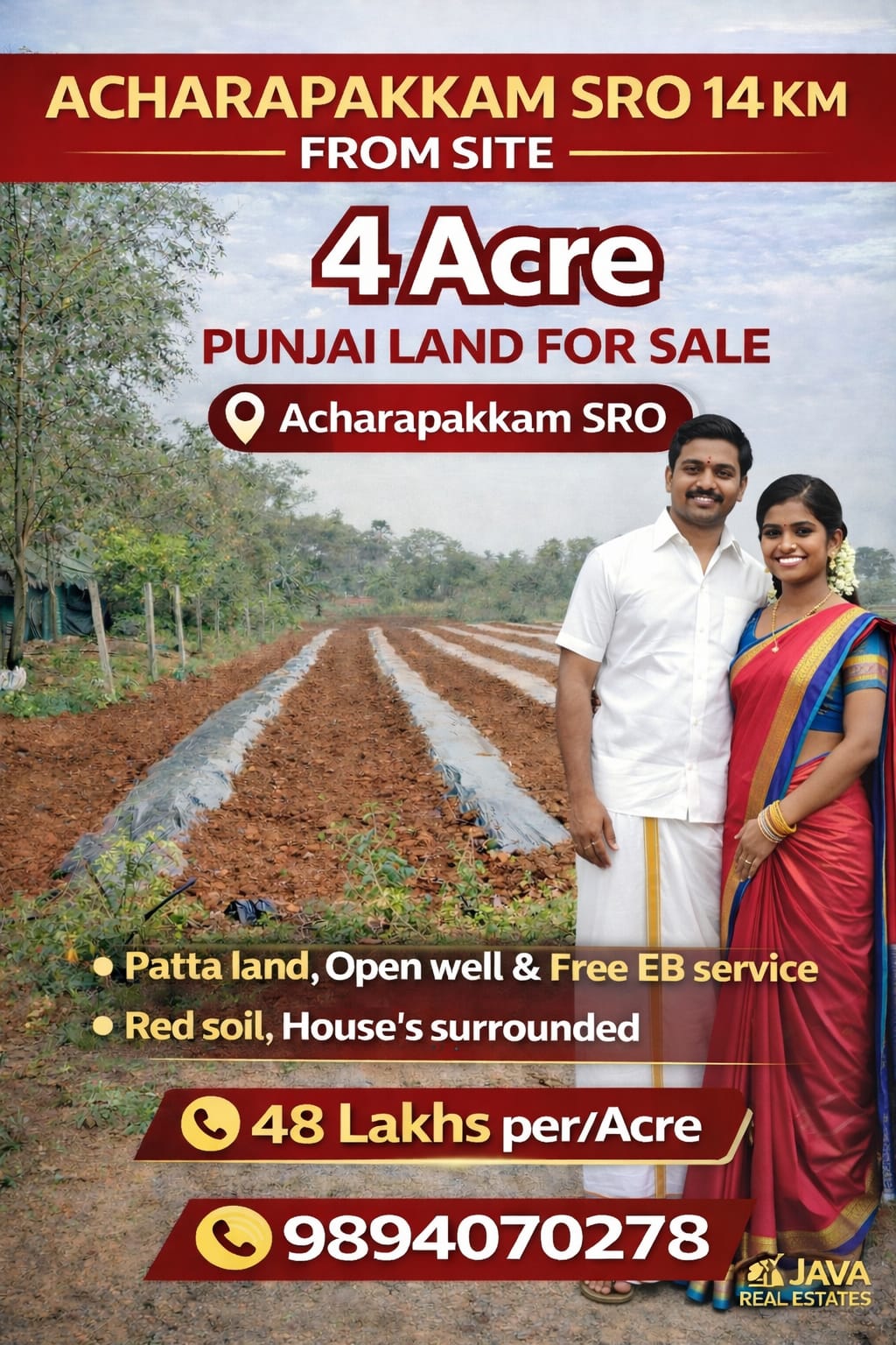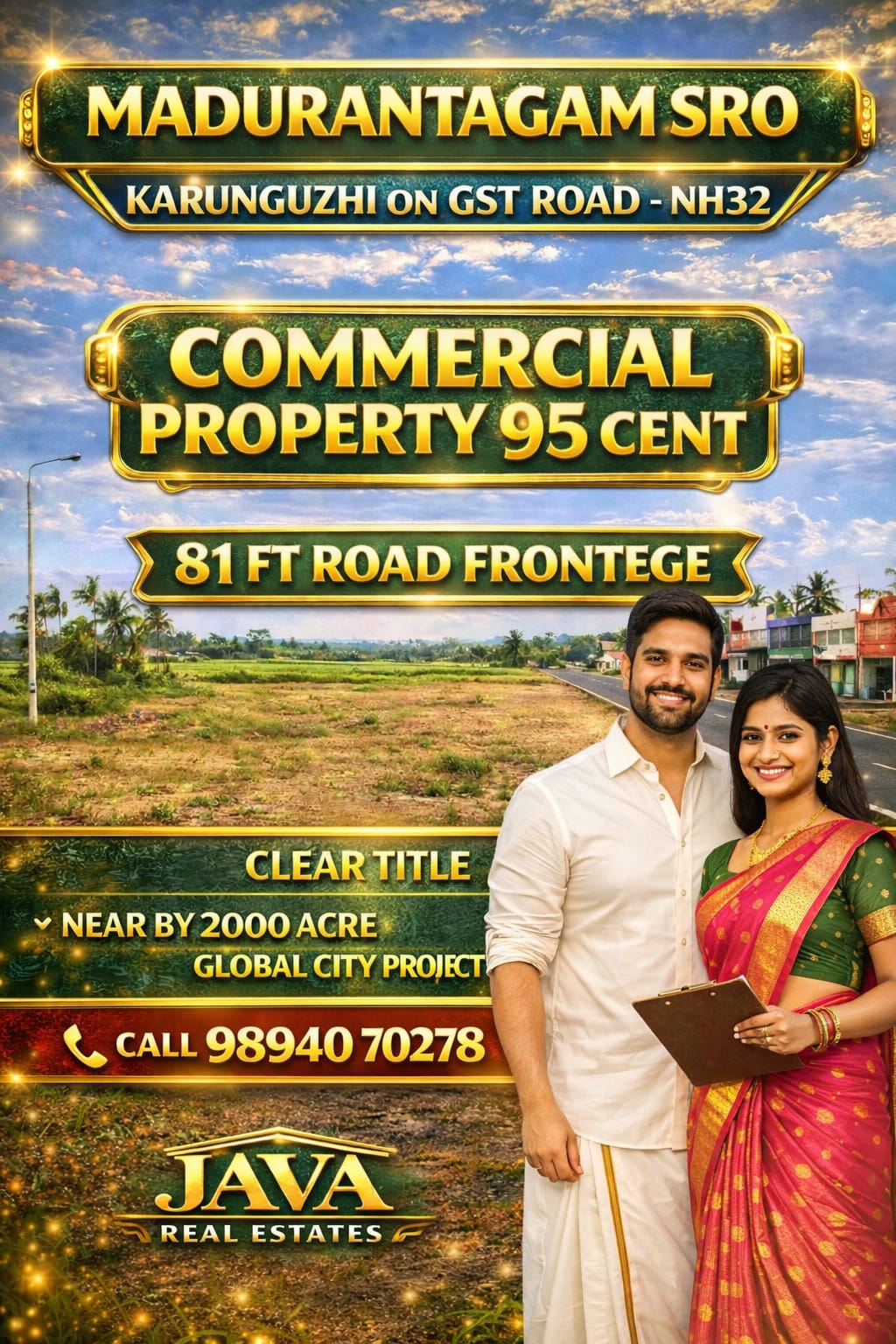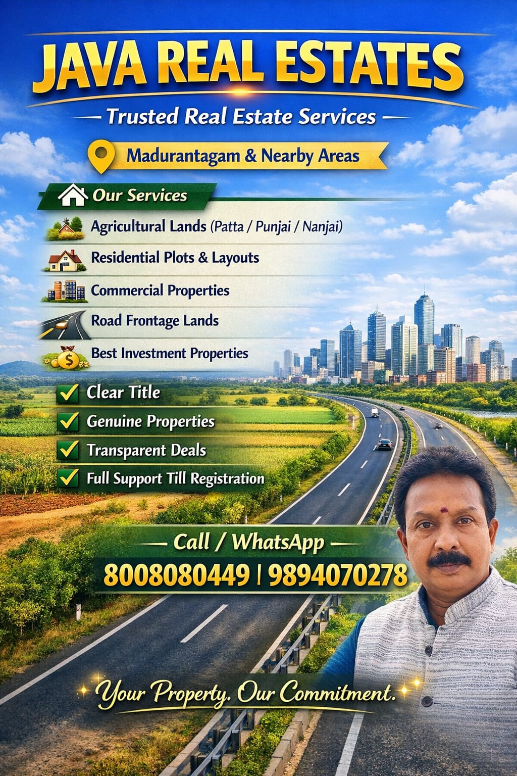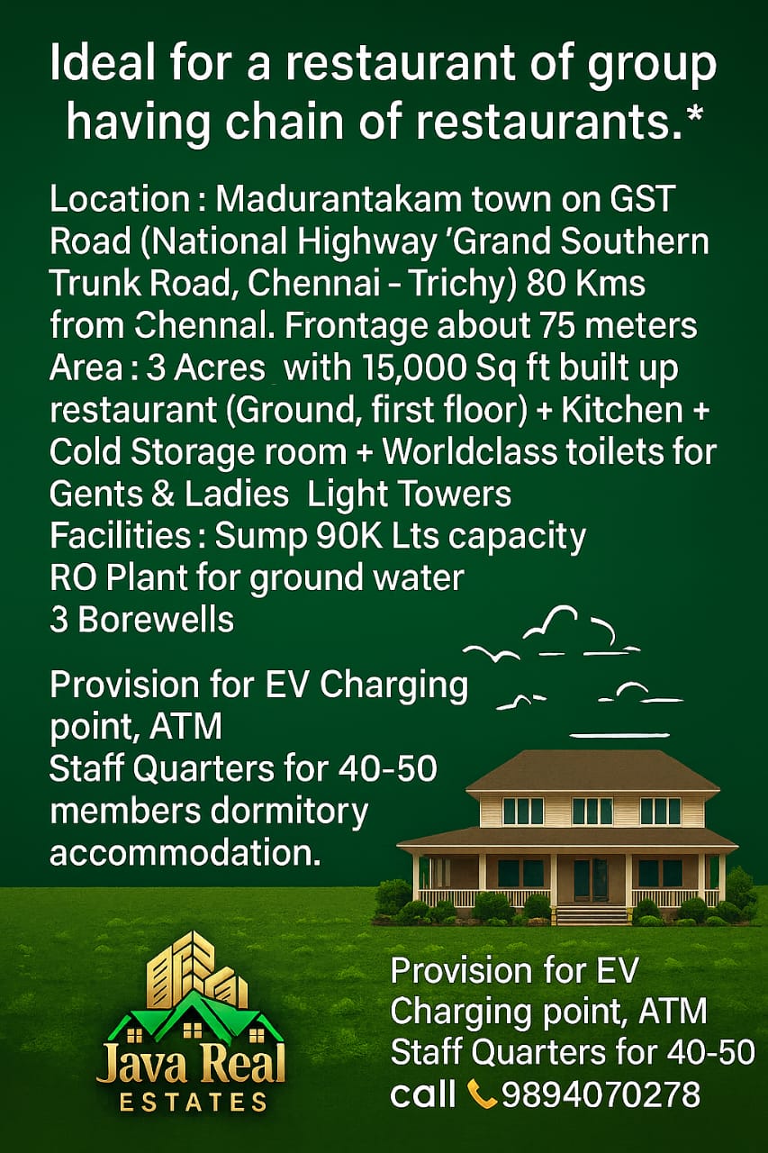Java Real Estates is a trusted real estate consultancy based in the Madurantakam region, specializing in farm lands, agricultural lands, and prime commercial properties. We help buyers and investors find the right property with transparency, clear guidance, and the best market options.