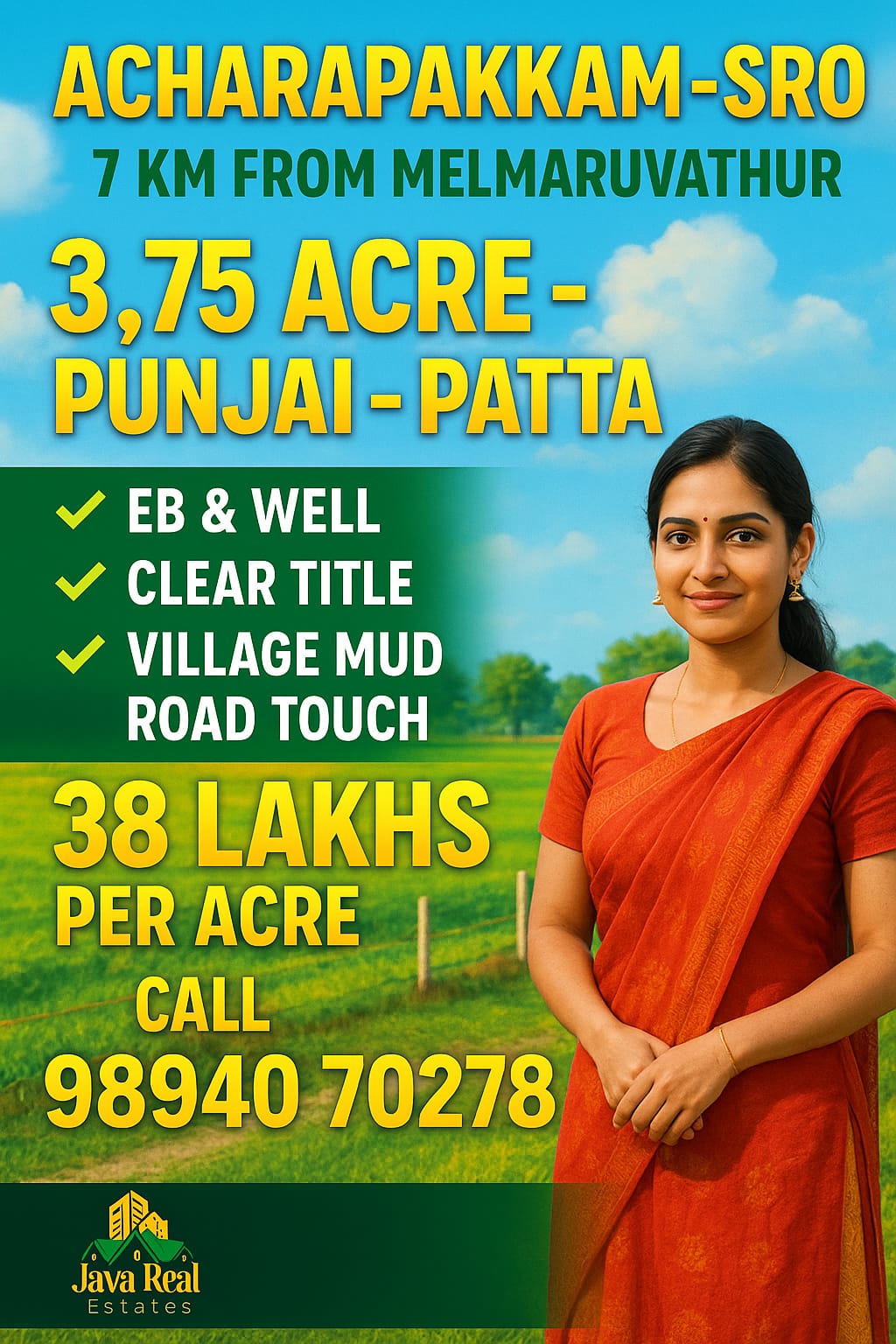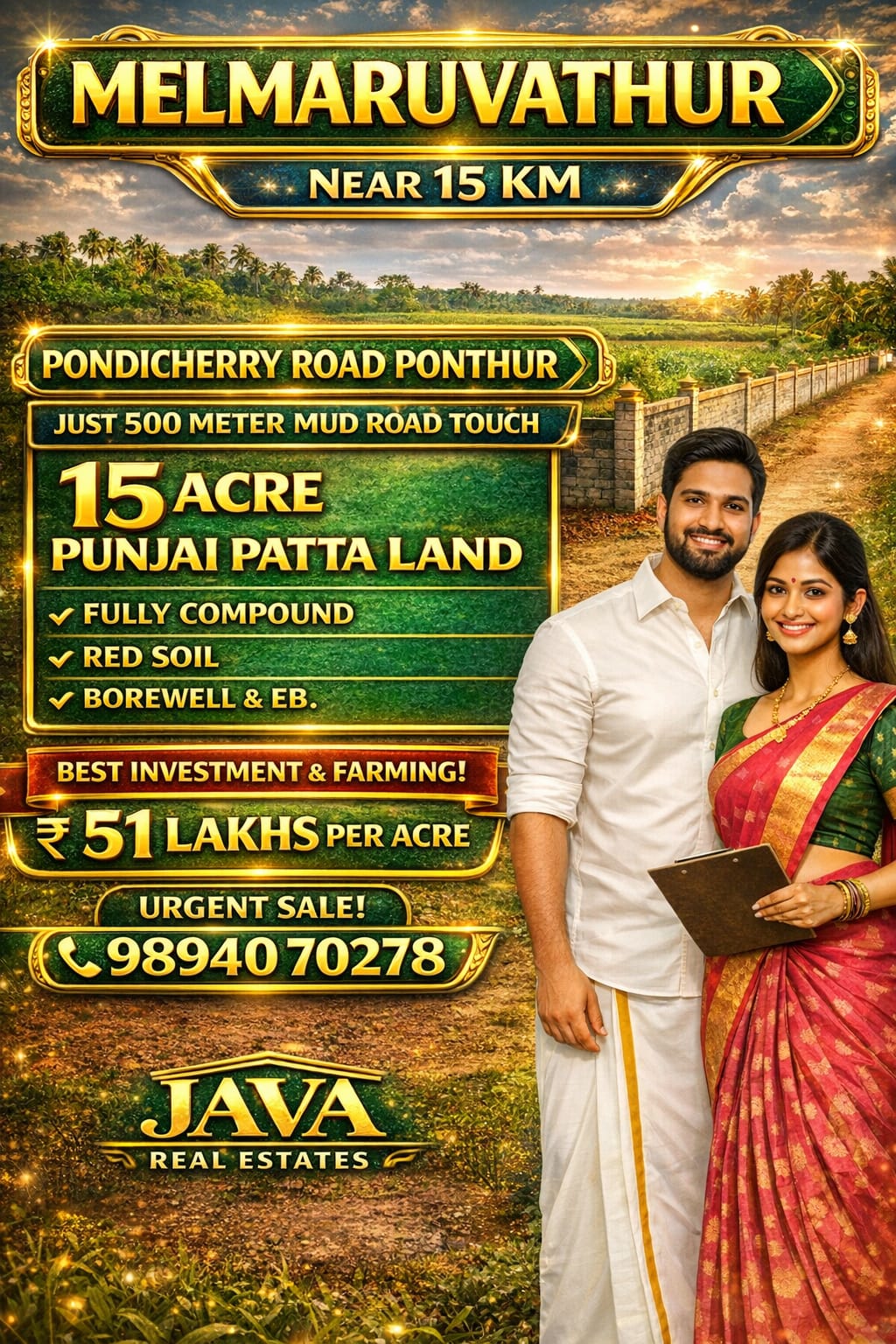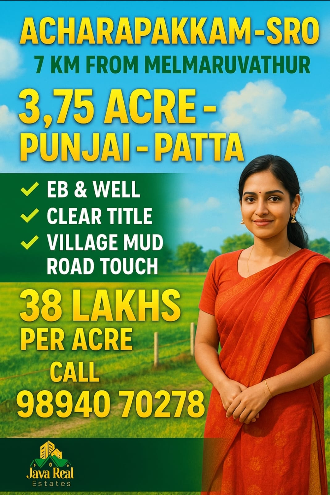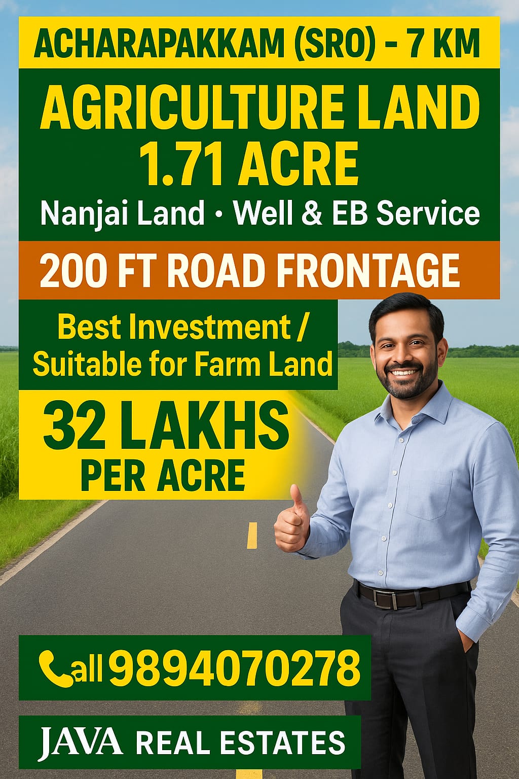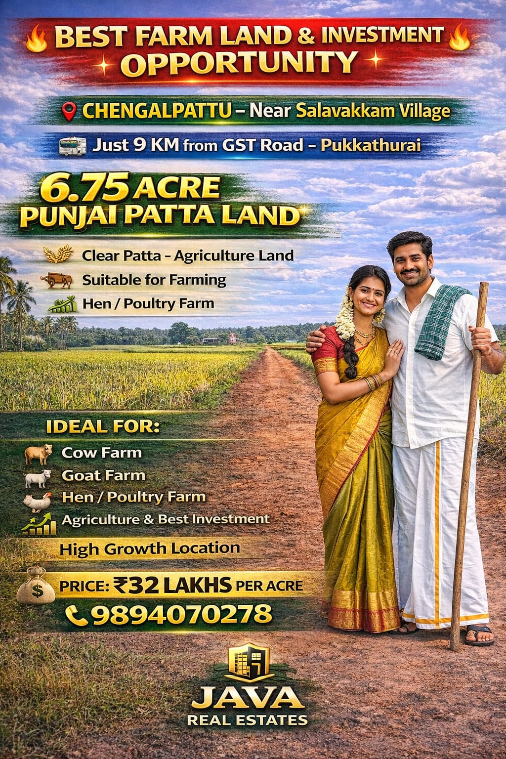 Java Real Estates is a trusted real estate consultancy based in the Madurantakam region, specializing in farm lands, agricultural lands, and prime commercial properties. We help buyers and investors find the right property with transparency, clear guidance, and the best market options.