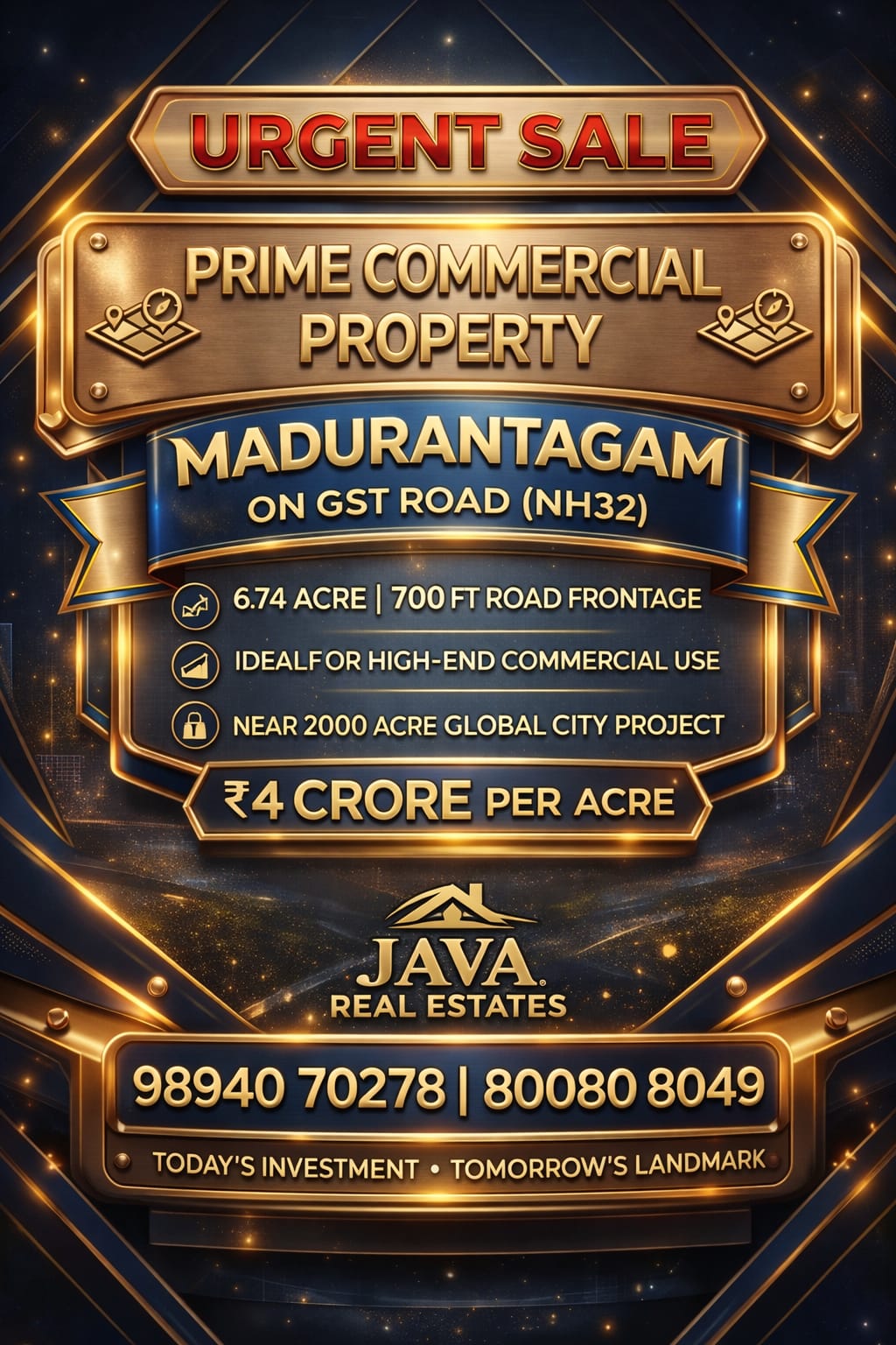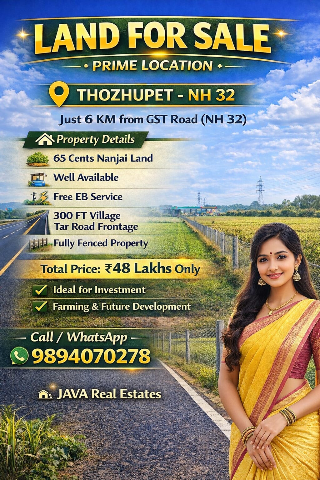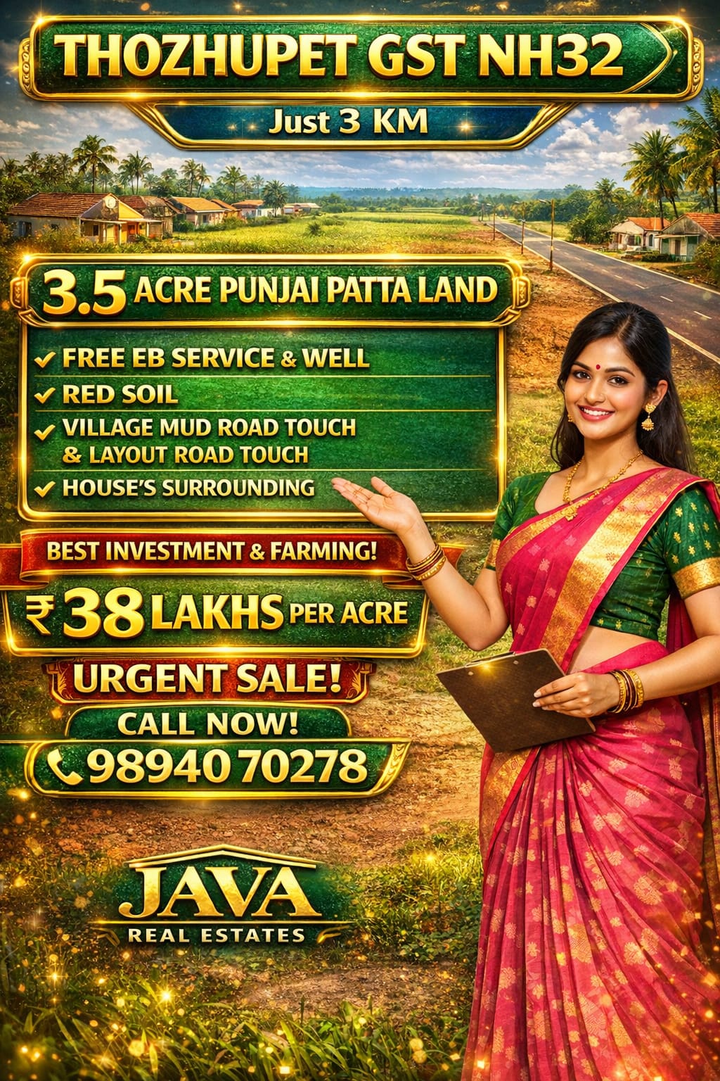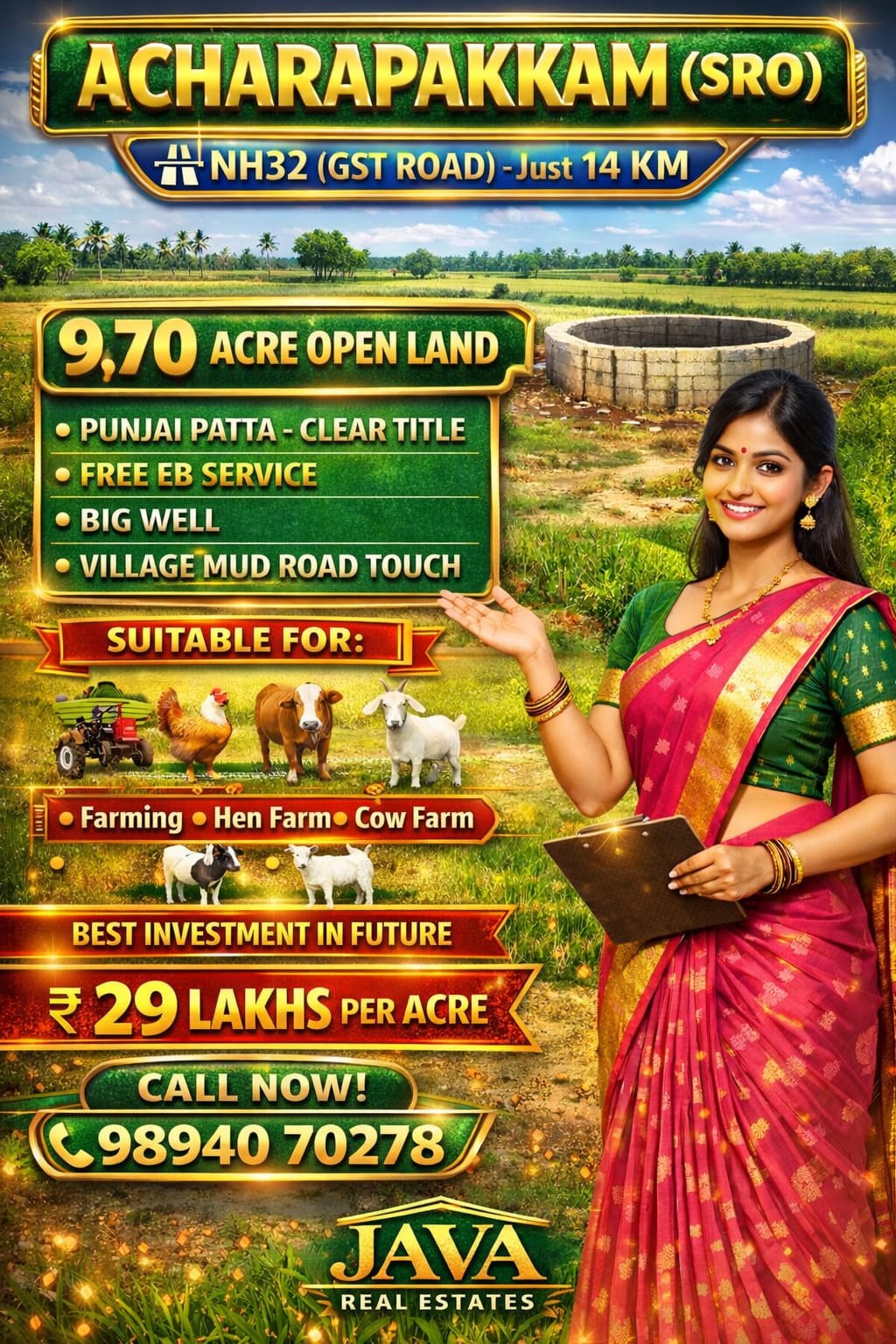 Java Real Estates is a trusted real estate consultancy based in the Madurantakam region, specializing in farm lands, agricultural lands, and prime commercial properties. We help buyers and investors find the right property with transparency, clear guidance, and the best market options.